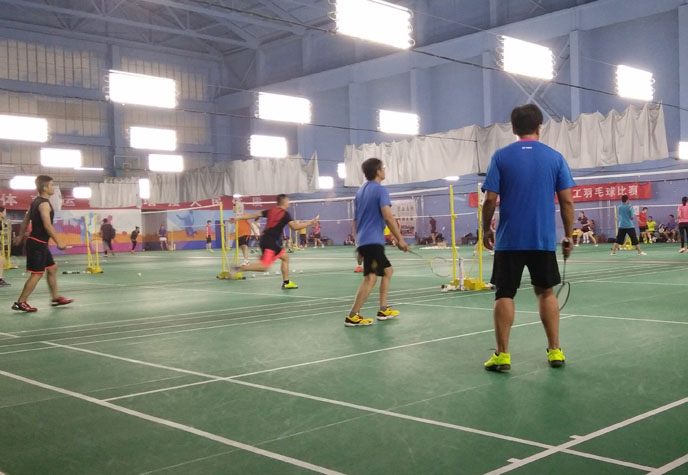 10月1日,甜水园羽毛球馆一片欢声笑语,北京青春俱乐部与广州市威健体育用品有限公司在此举行澳加林羽毛球试打会。