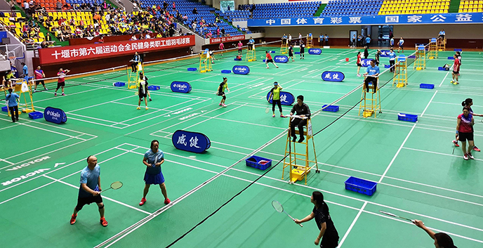 金秋送爽,丹桂飘香。这个九月,为推动全民健身运动深入开展,湖北省十堰市第六届运动会全民健身类职工组羽毛球赛于16日拉开战幕。赛事由十堰市人民政府主办、广州威健体育热诚支持。来自丹江口、云溪、竹山等各县市区代表队将近300名选手参加了本次比赛。