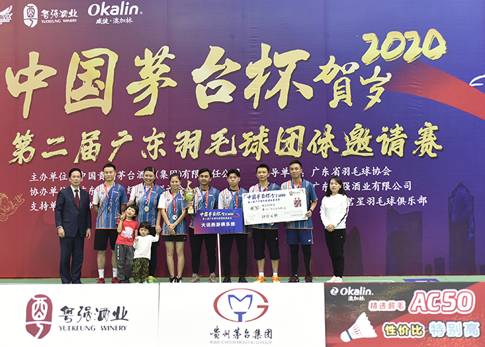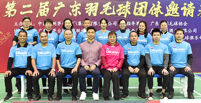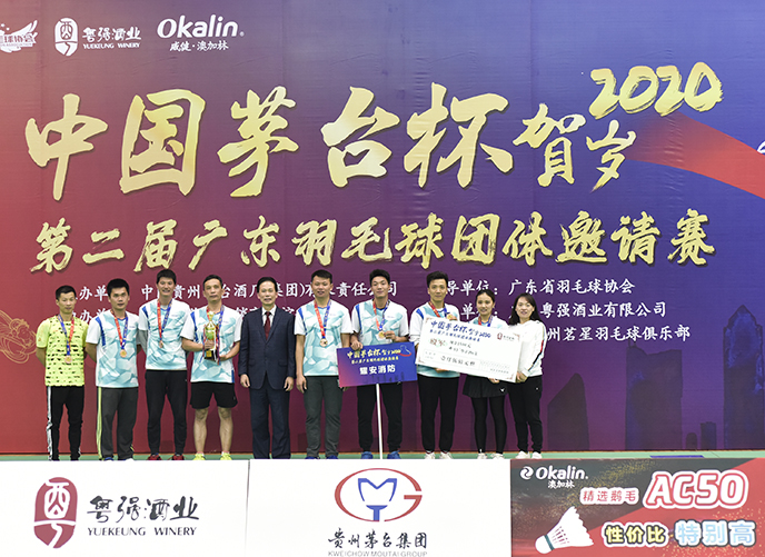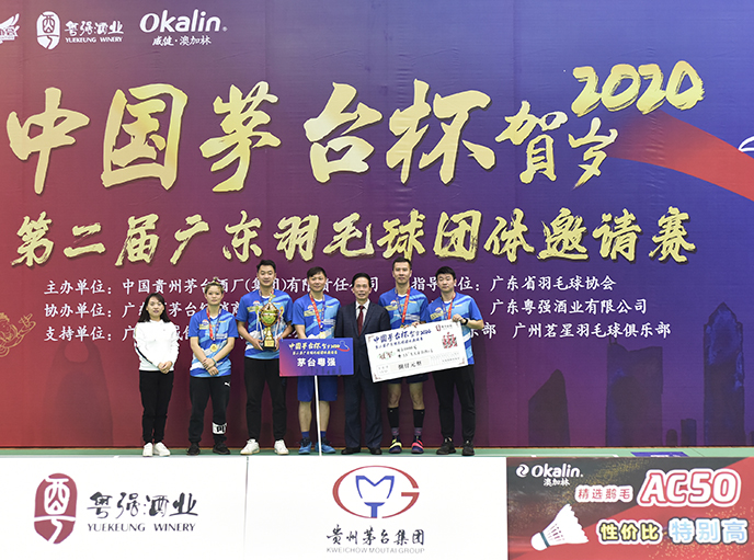 12月28-29日,“中国茅台杯”贺岁2020第二届广东羽毛球团体邀请赛在广州荔湾体育馆羽毛球场进行,由中国贵州茅台酒厂(集团)有限责任公司主办,广东省羽毛球协会指导,广东省茅台经销商联谊会协办,广东粤强酒业有限公司承办,广州市威健体育用品有限公司、广州穗羽羽毛球俱乐部、广州茗星羽毛球俱乐部支持,来自广州、茂名等29支队伍近300名运动员参加。本次邀请赛唯一指定用球为威健·澳加林Okalin AC-50。